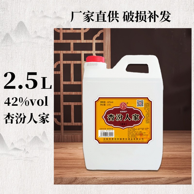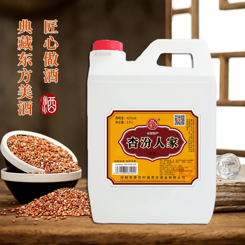 2.5L42度杏汾人家清香型桶装粮食酒批发固态发酵