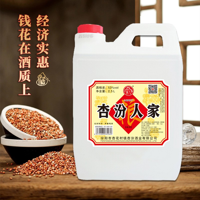 • 2.5L 53度杏纷人家白酒批发桶装清香型散装粮食酒 厂家直供酒水纯粮
