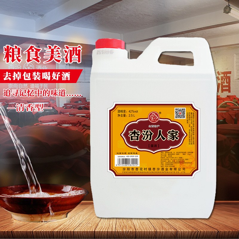 2.5L42度杏汾人家清香型桶装粮食酒批发固态发酵