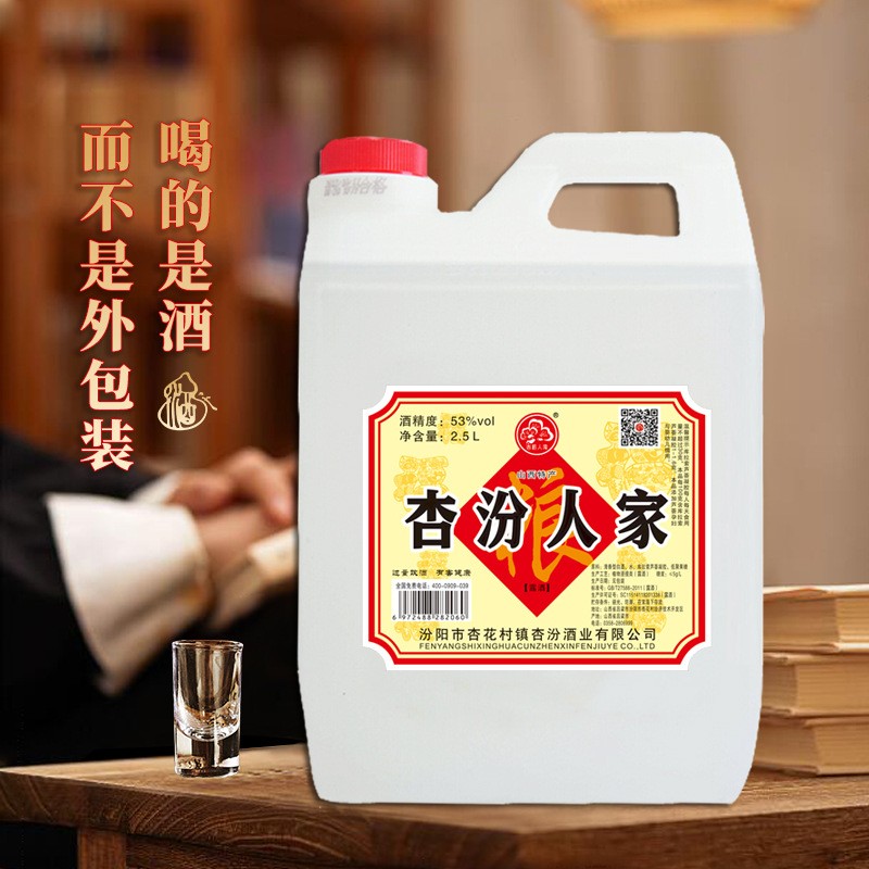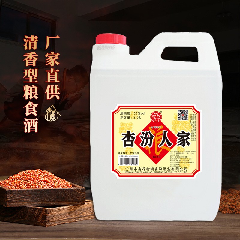 • 2.5L 53度杏纷人家白酒批发桶装清香型散装粮食酒 厂家直供酒水纯粮